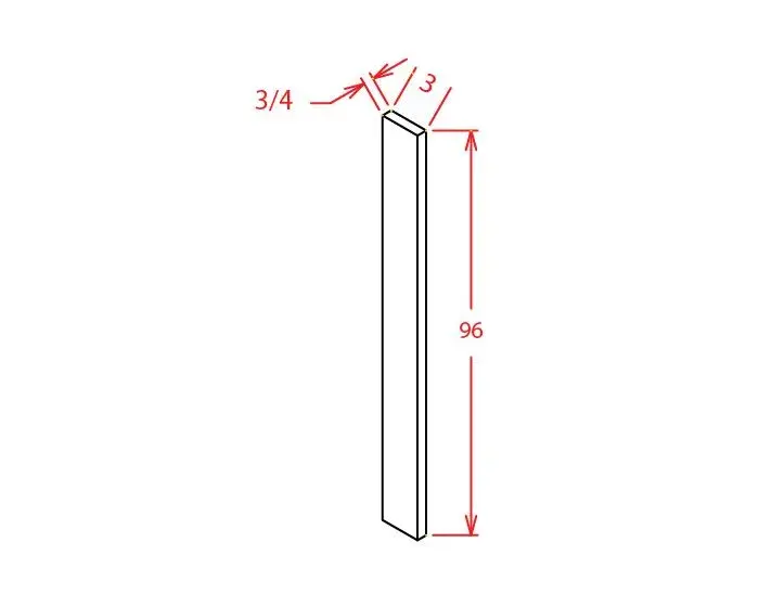 Dimensions are 3" wide by 3/4" in depth and 96" in height. Tall 3" filler.