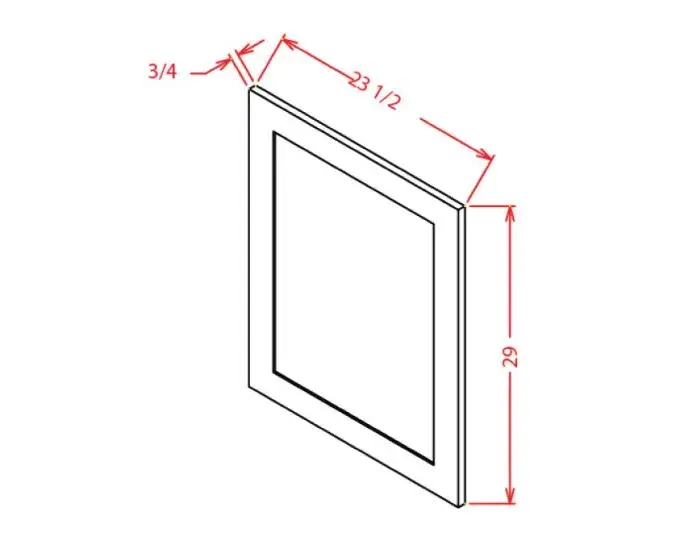Dimensions are 20-1/2" wide by 3/4" in depth and 29" in height. Vanity Decorative End Panel.