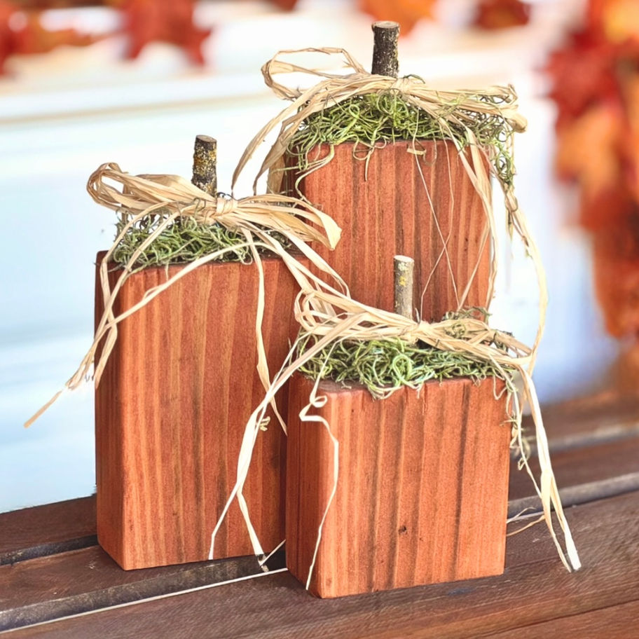 Country Rustic Farmhouse Wood Pumpkin Trio Fall Decor Set